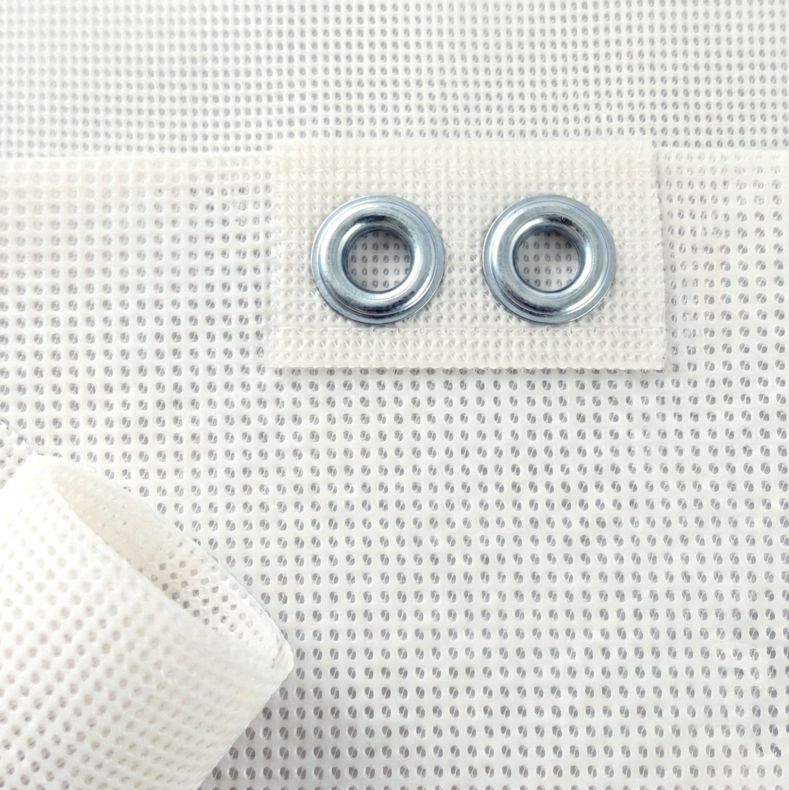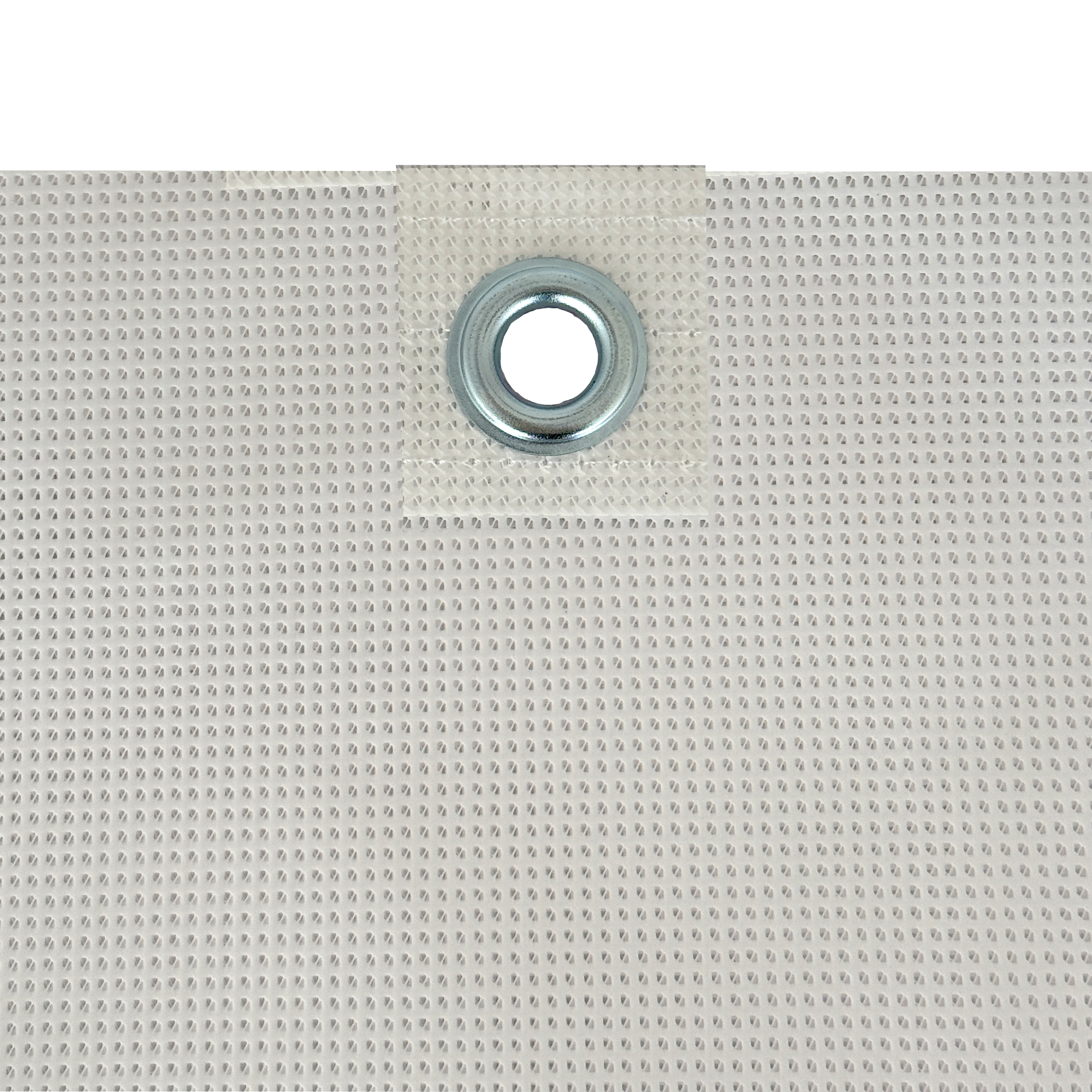 Zahŕňa precízne obšitie a osadenie očiek s vnútorným priemerom 12 mm, ktoré sú rozmiestnené v intervaloch 40 cm. Toto riešenie je ideálne na upevnenie závesu pri veternom počasí a umožňuje jednoduché prichytenie k altánku alebo stene pomocou karabín a očiek.