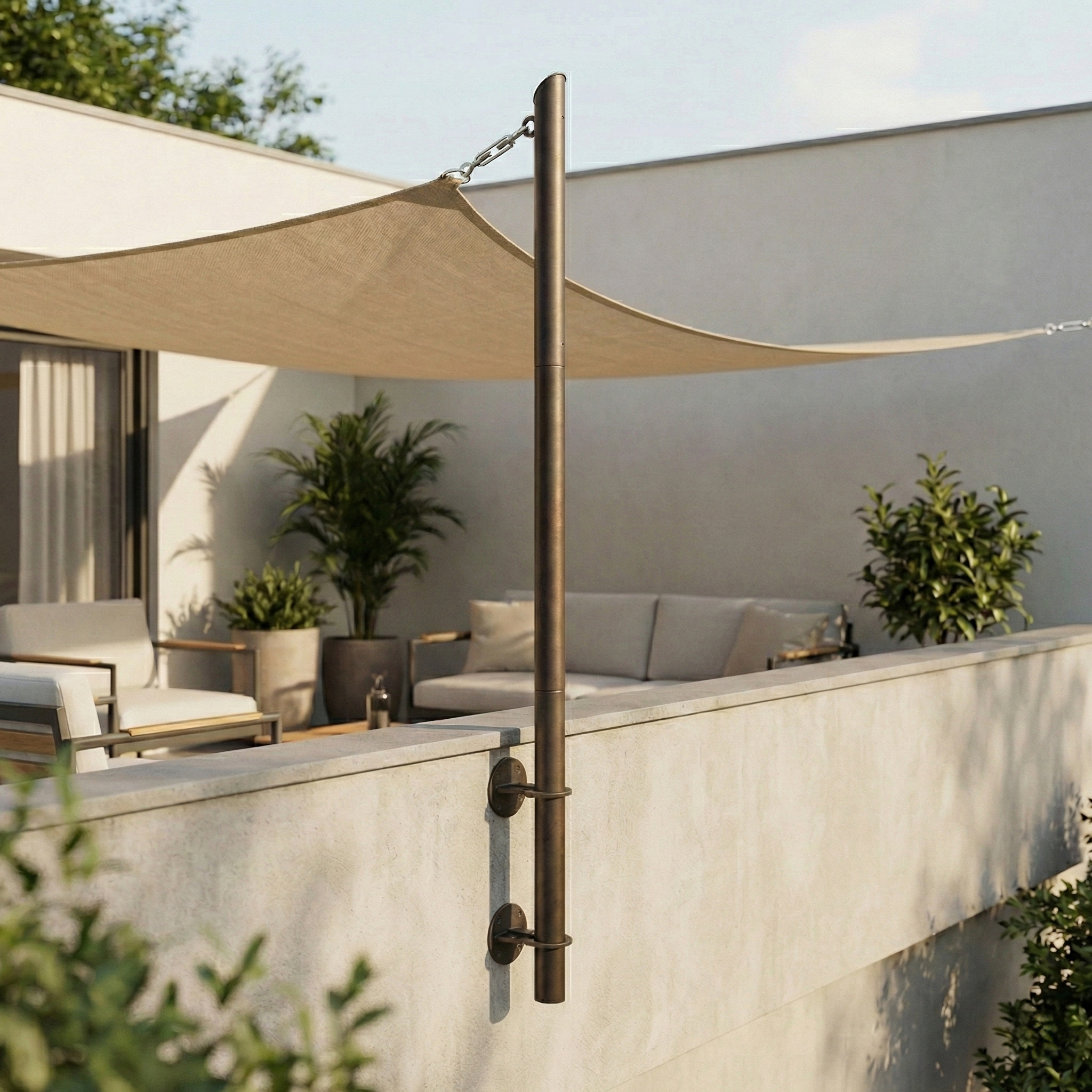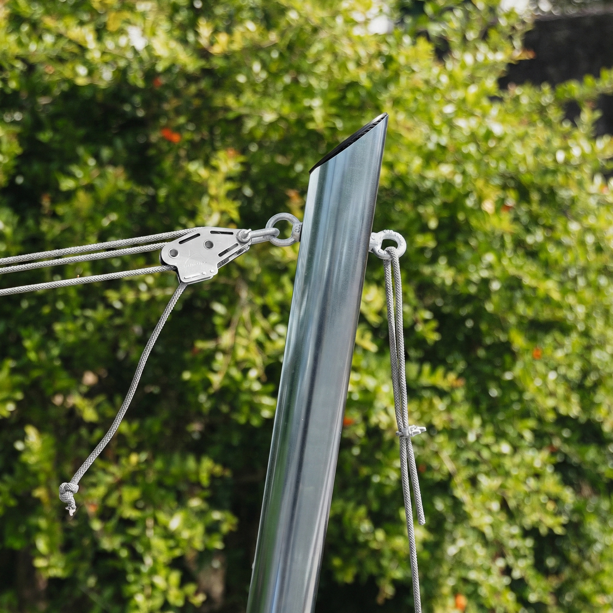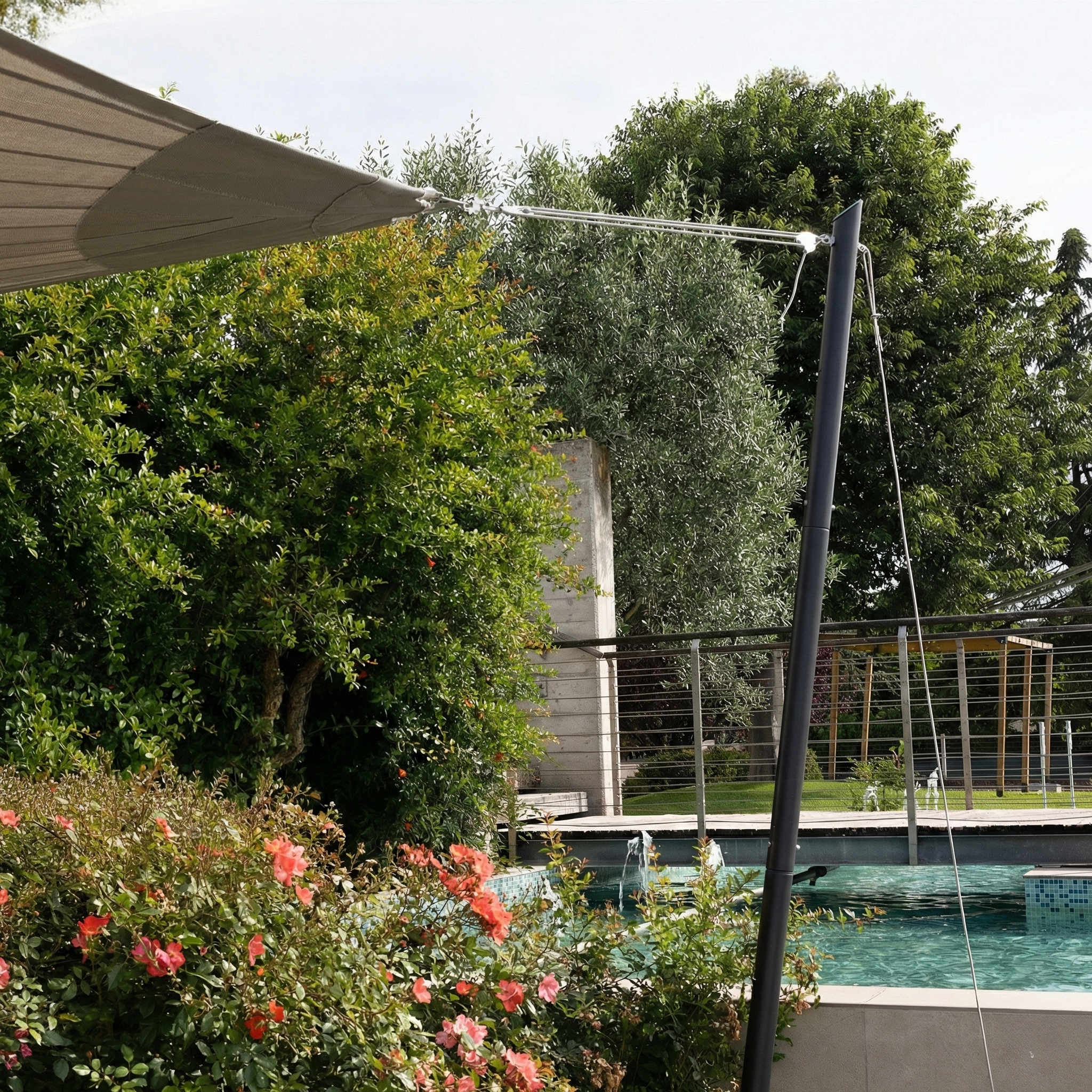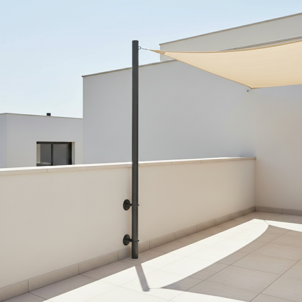 EZ Mast je oceľový tieniaci stĺp s 5 kotviacimi bodmi, ktorý spája vysokú pevnosť s flexibilitou pri montáži. Ako jediný model vo svojej kategórii umožňuje efektívne a pevné napínanie plachty, čo z neho robí spoľahlivú voľbu pre každú inštaláciu.