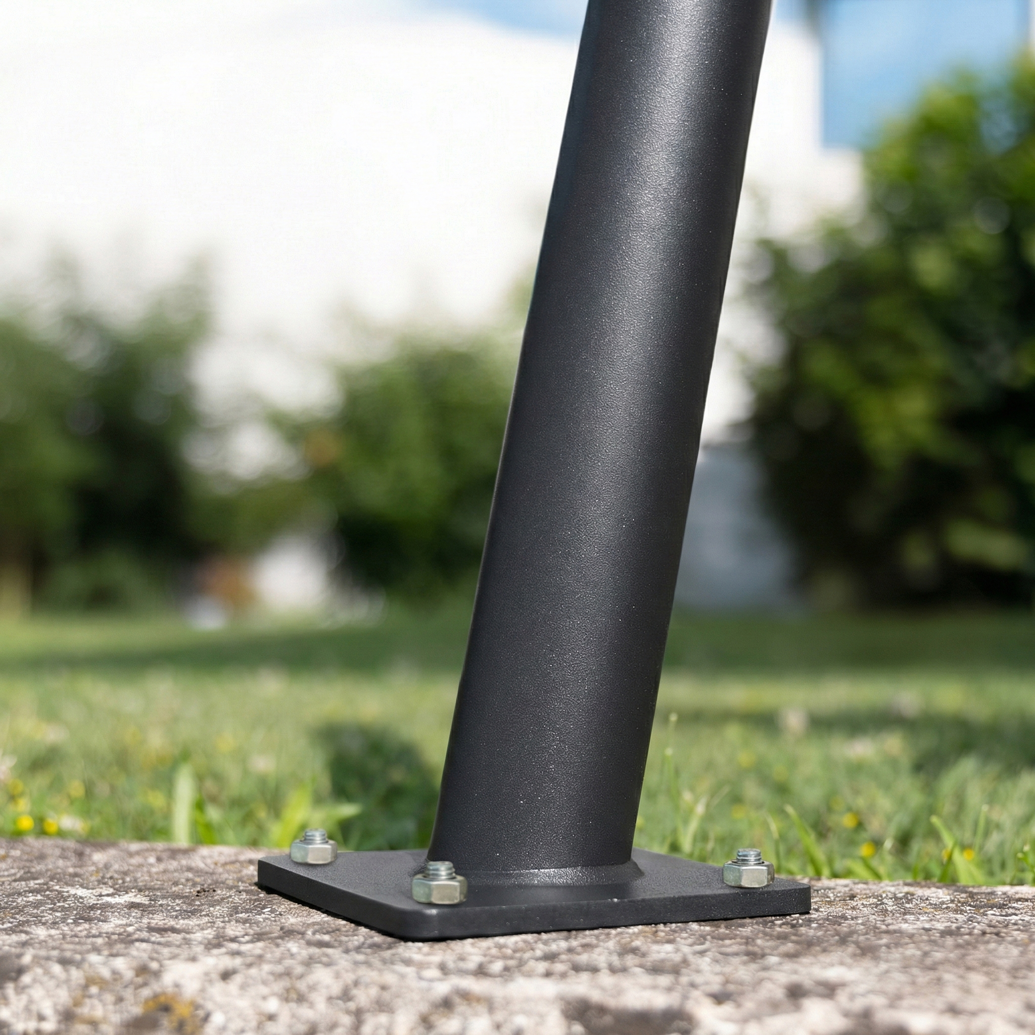 • Montážna doska (sklon 80°) Ideálna pre pevné povrchy ako betón a dlažba. Ponúka sklon stĺpu 80°, čo zaručuje stabilitu a vizuálne čistú inštaláciu. Skvelá voľba pre tých, ktorí hľadajú maximálnu pevnosť a vycibrenú estetiku.