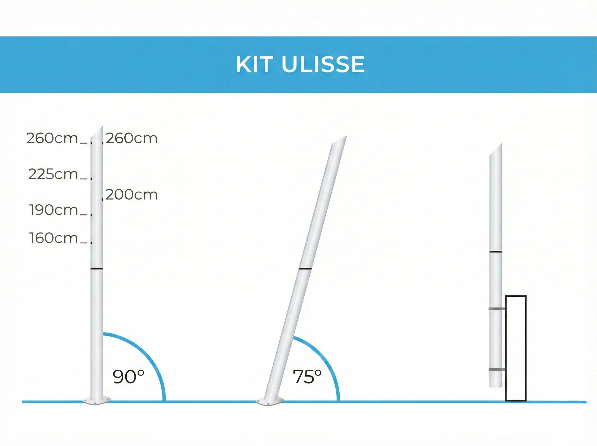 Ulisse predstavuje kotviaci stĺp pre pre tieniace plachty, ktorý v sebe spája vysokú robustnosť a funkčný dizajn. Je vyrobený z ocele s unikátnym eliptickým prierezom a ponúka bezkonkurenčnú pevnosť v ohybe v porovnaní s bežnými guľatými trubkami. Ide o praktické a bezpečné riešenie určené pre všetky typy plachiet Maanta.