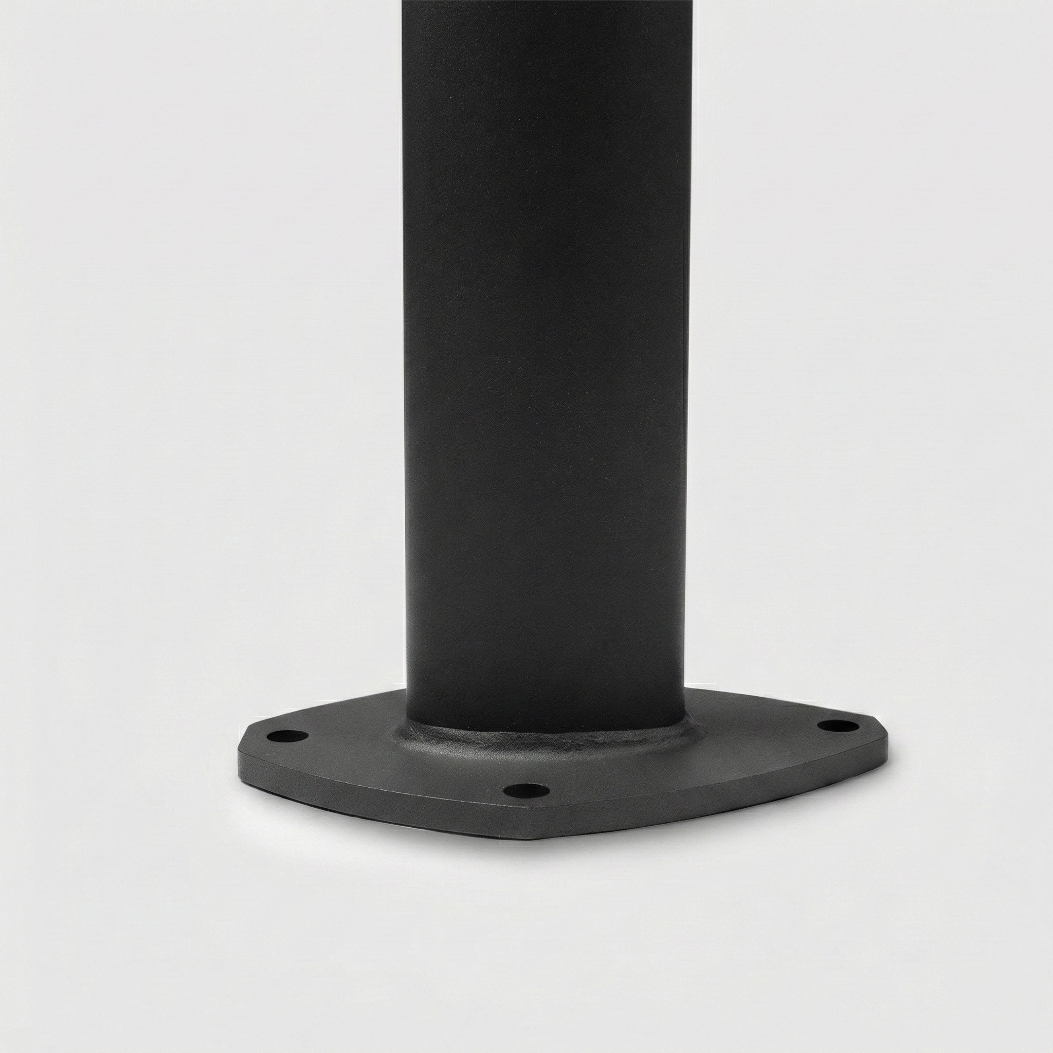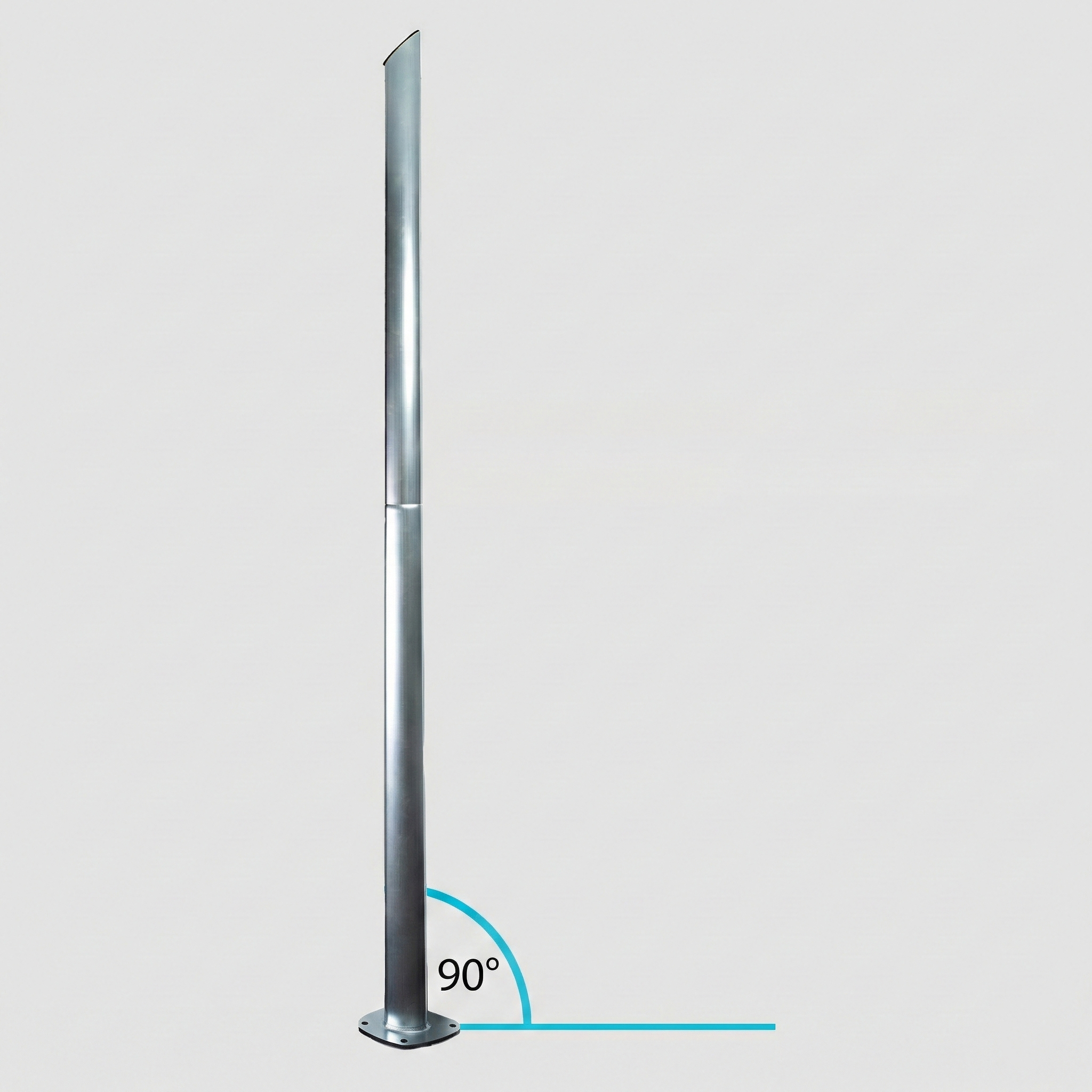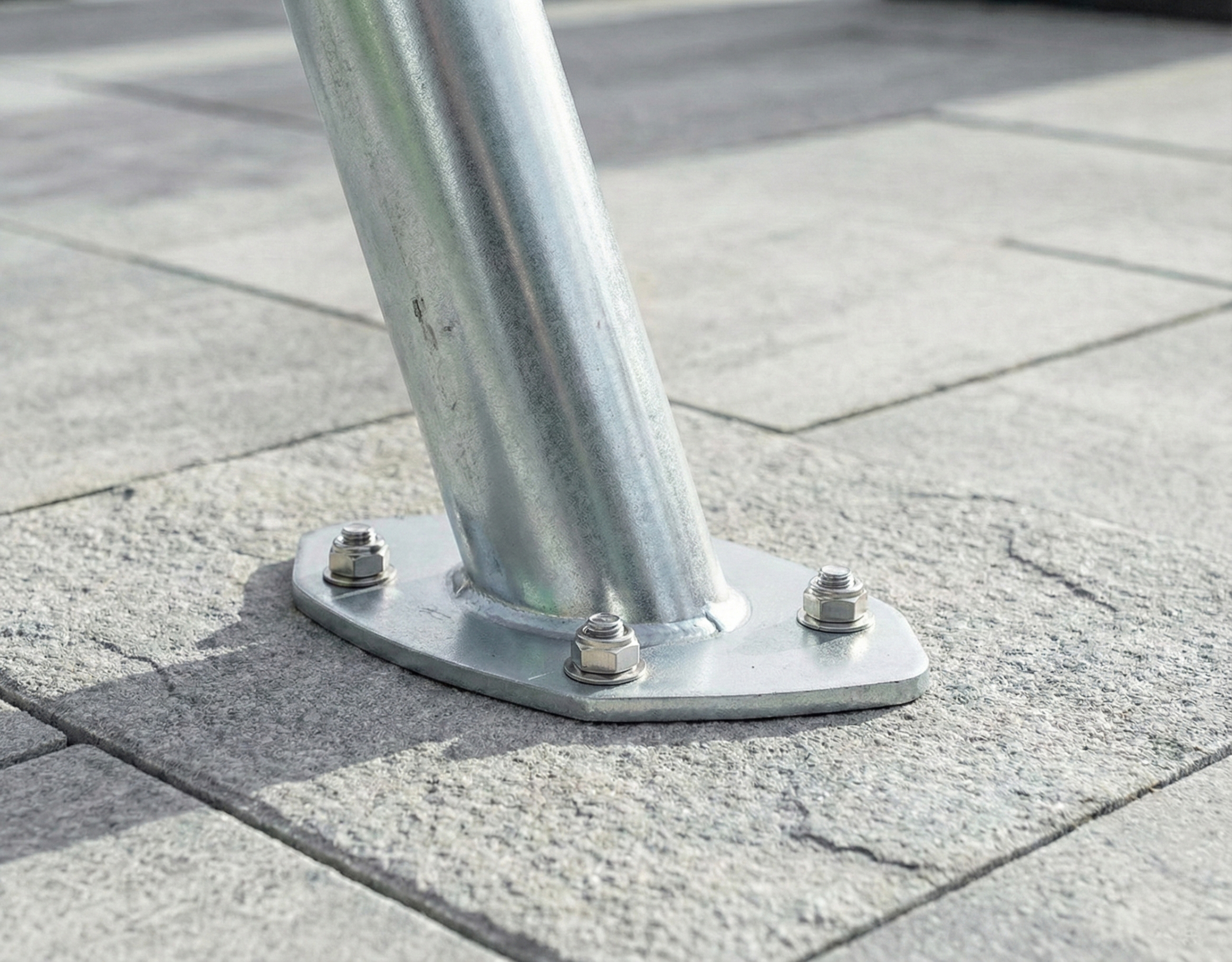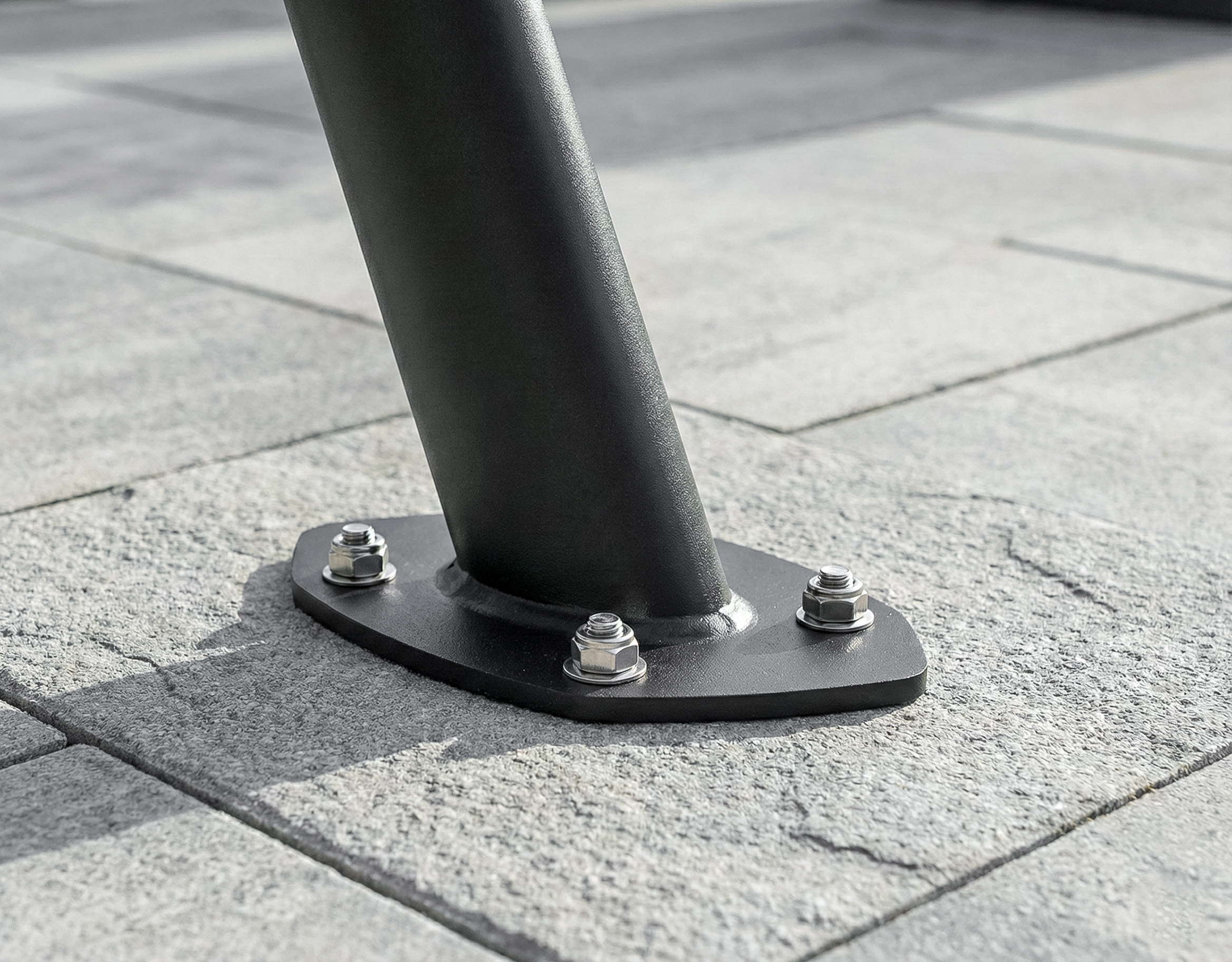 Tradičné kolmé uchytenie do pevného podkladu, ktoré šetrí miesto a udržuje stĺp v dokonale vertikálnej polohe.