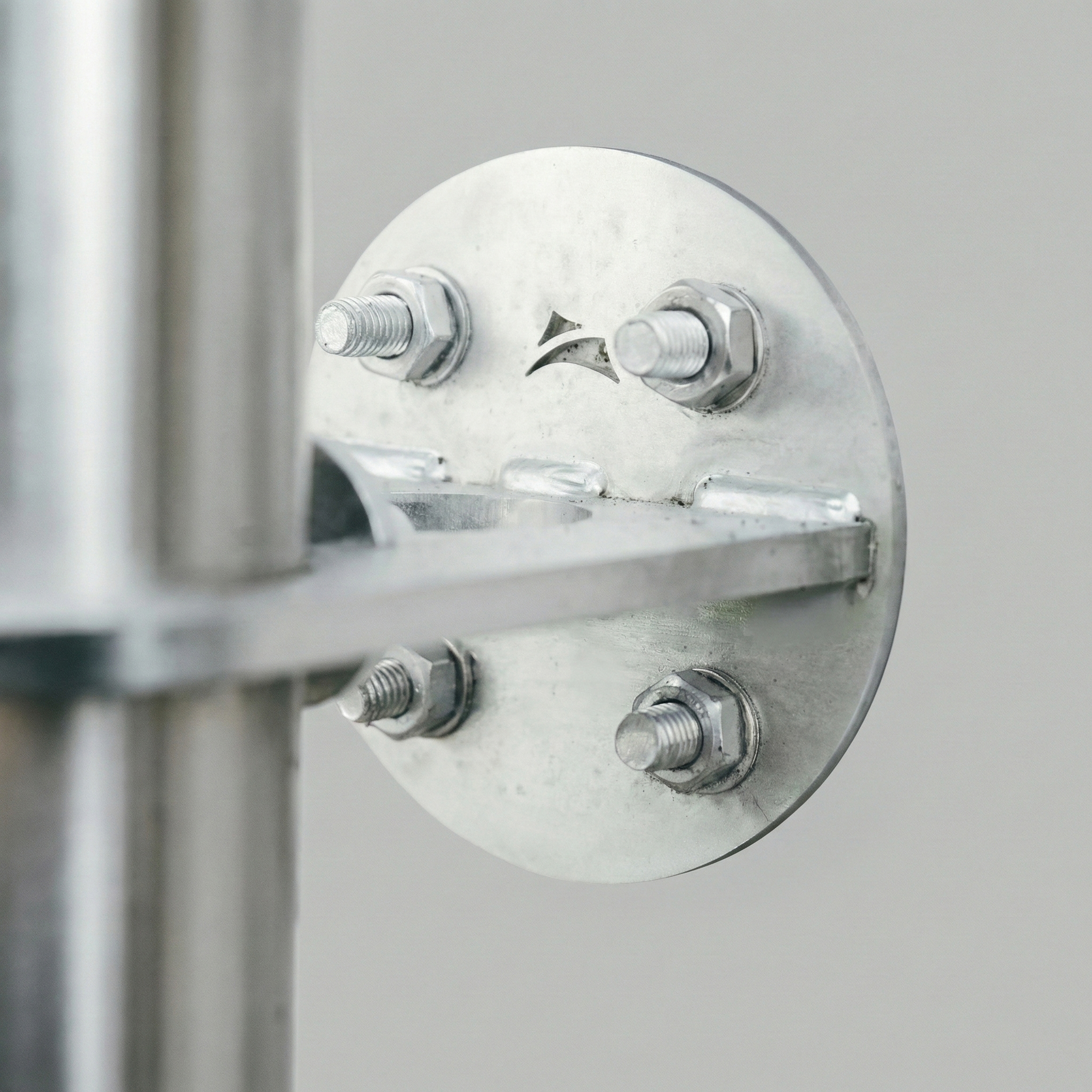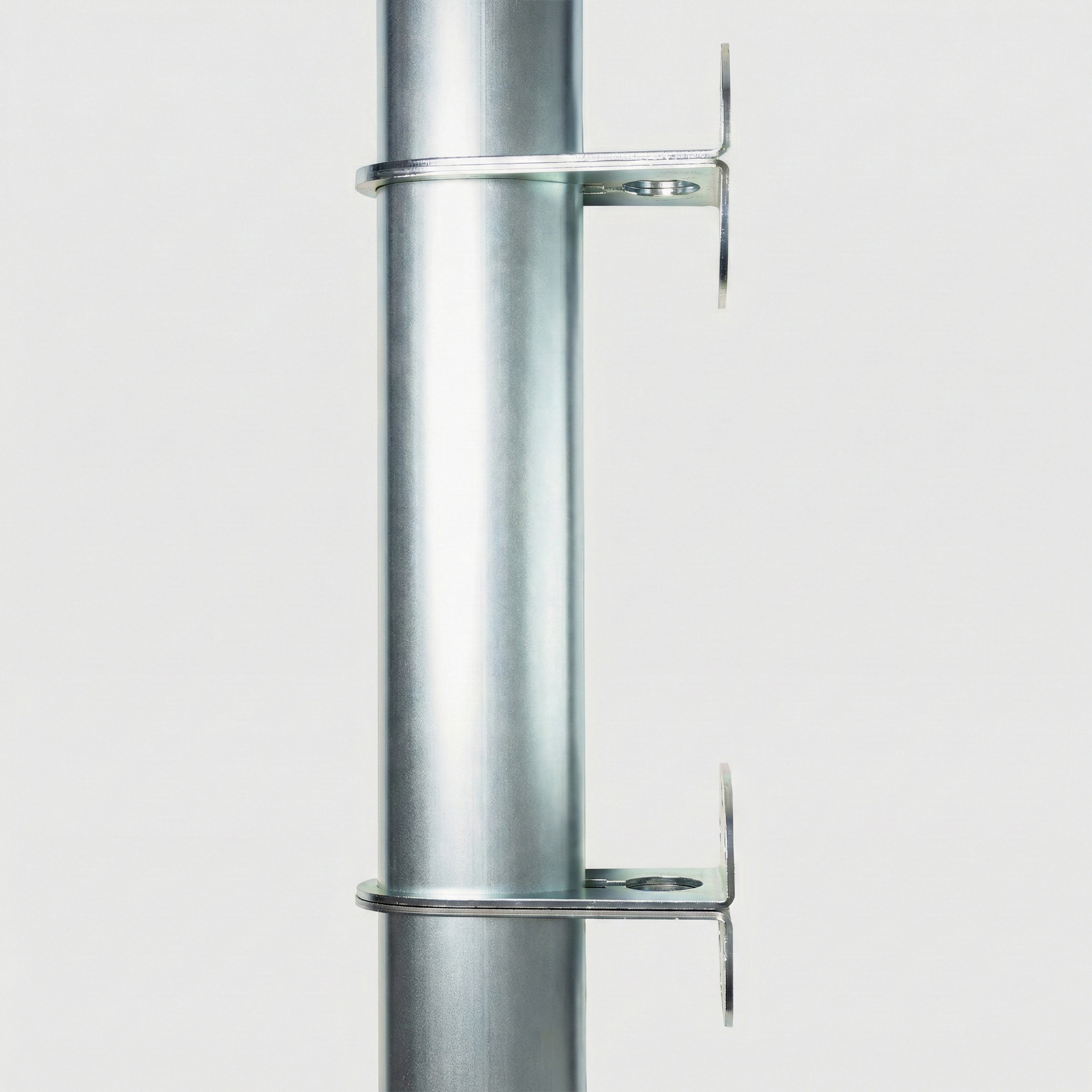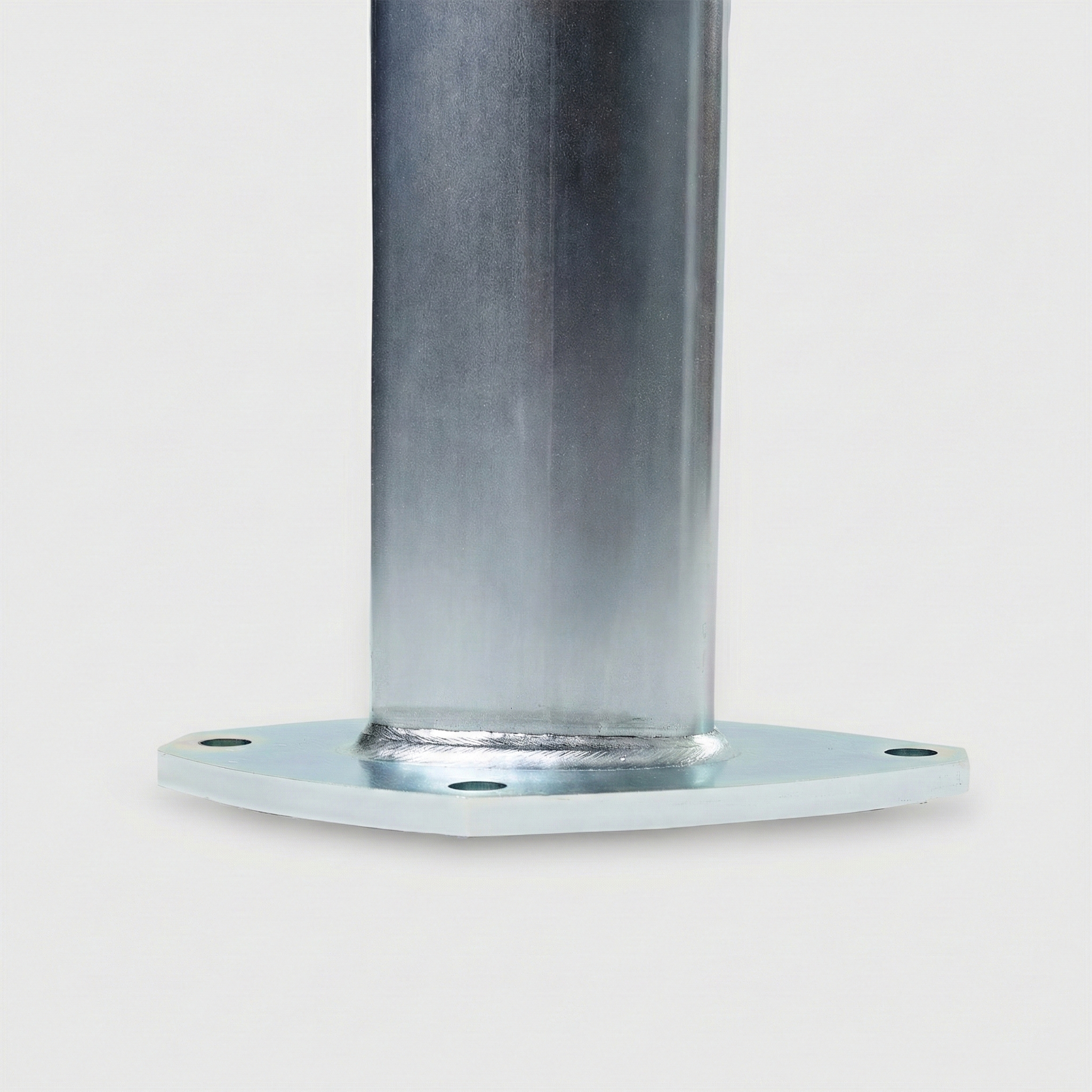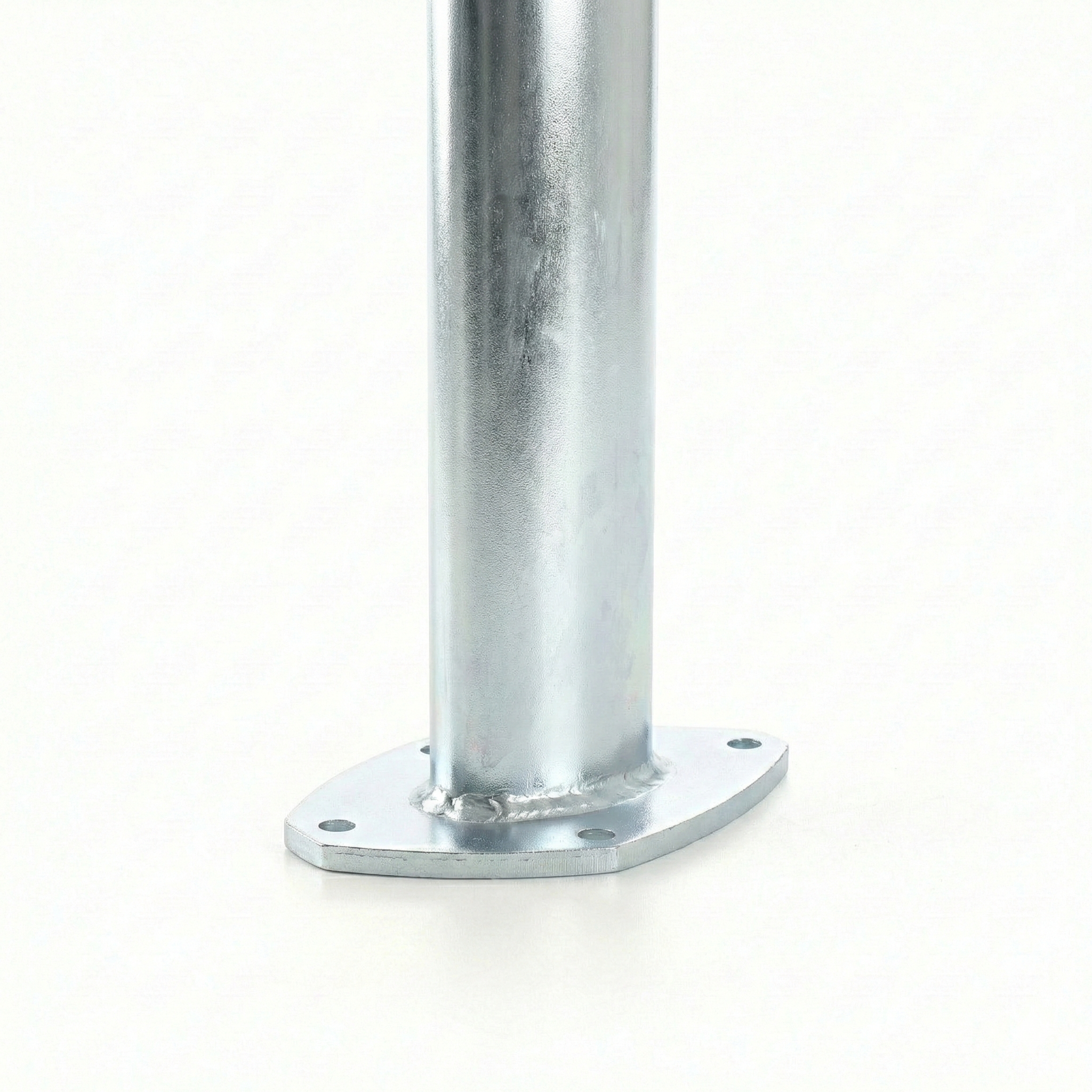 Tradičné kolmé uchytenie do pevného podkladu, ktoré šetrí miesto a udržuje stĺp v dokonale vertikálnej polohe.
