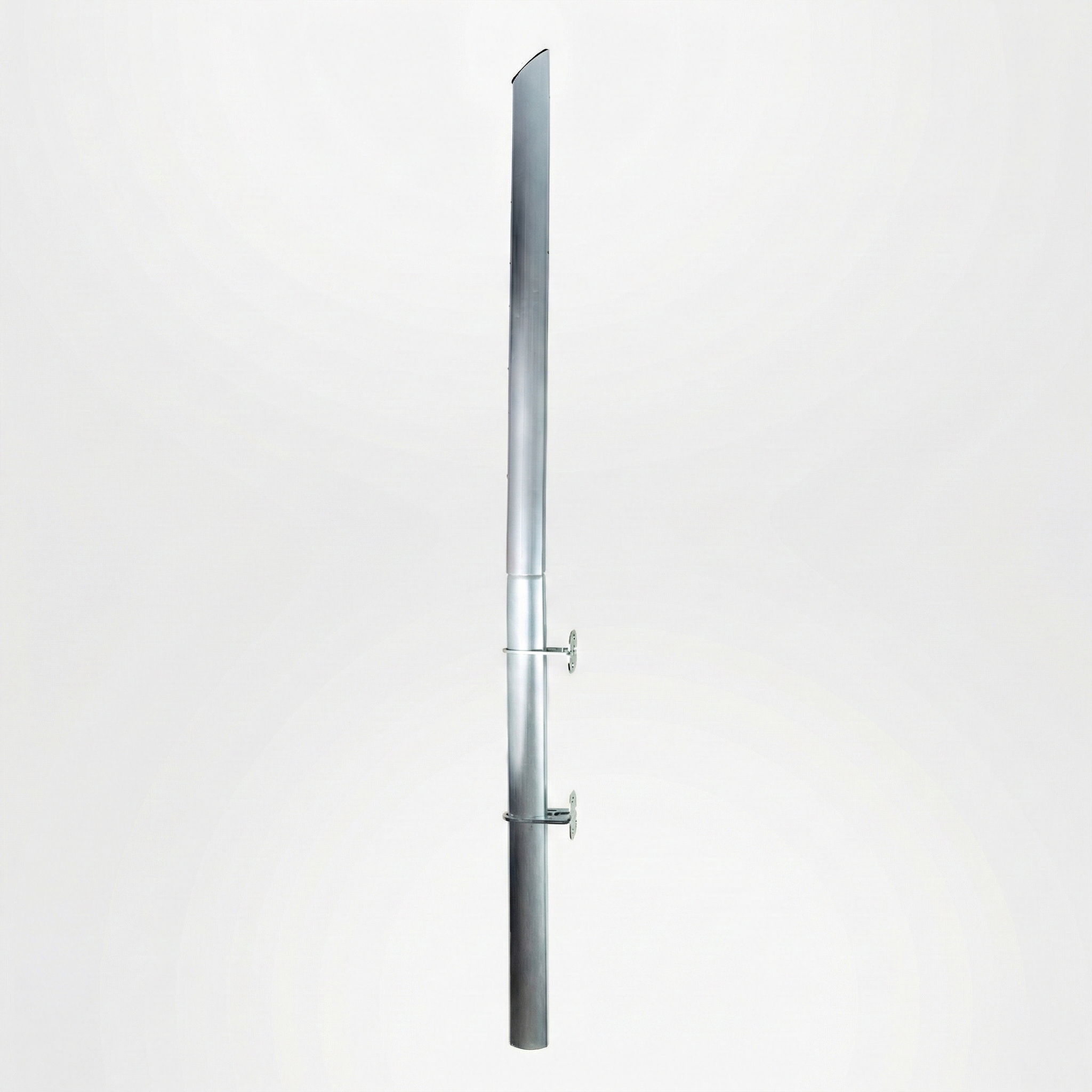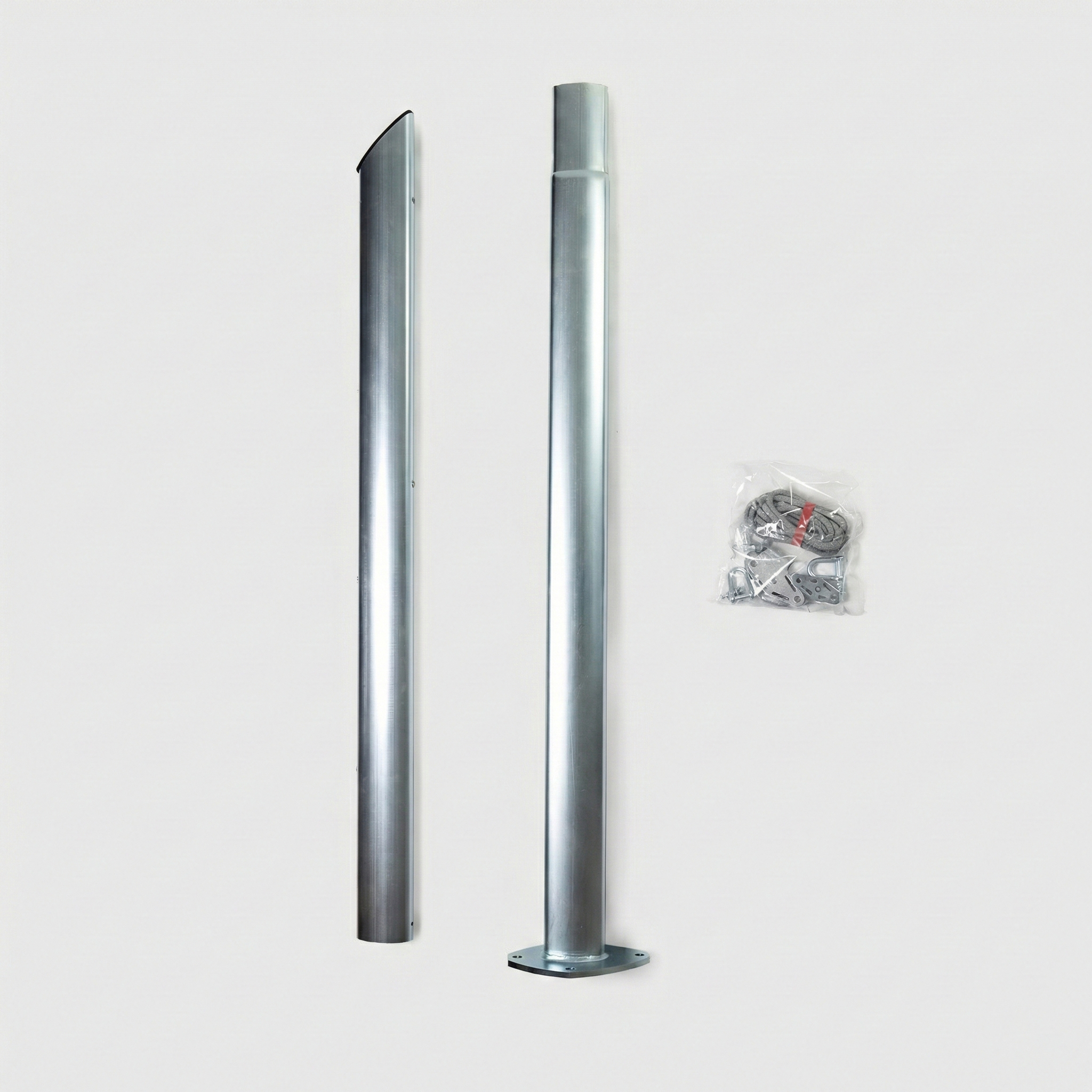 Eliptická oceľ s rozmermi 101 x 50,8 x 2 mm zabezpečuje extrémnu stabilitu. Celková výška stĺpu dosahuje 275 cm a dodáva sa v dvoch častiach s dĺžkou 135 a 140 cm. Ochranné pozinkovanie a priemyselné lakovanie v odtieňoch antracit zaručujú dlhú životnosť a odolnosť proti hrdzi aj slanej vode. Systém umožňuje nezávislé nastavenie výšky pre jednu alebo viac plachiet naraz a to až do počtu 6 kusov.