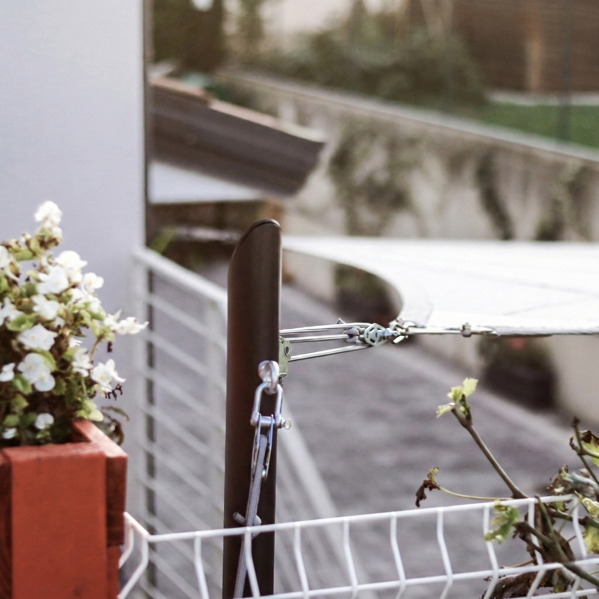 Uchytenie na stenu alebo múrik vhodné pre miesta, kde nie je možné vŕtať priamo do podlahy terasy.