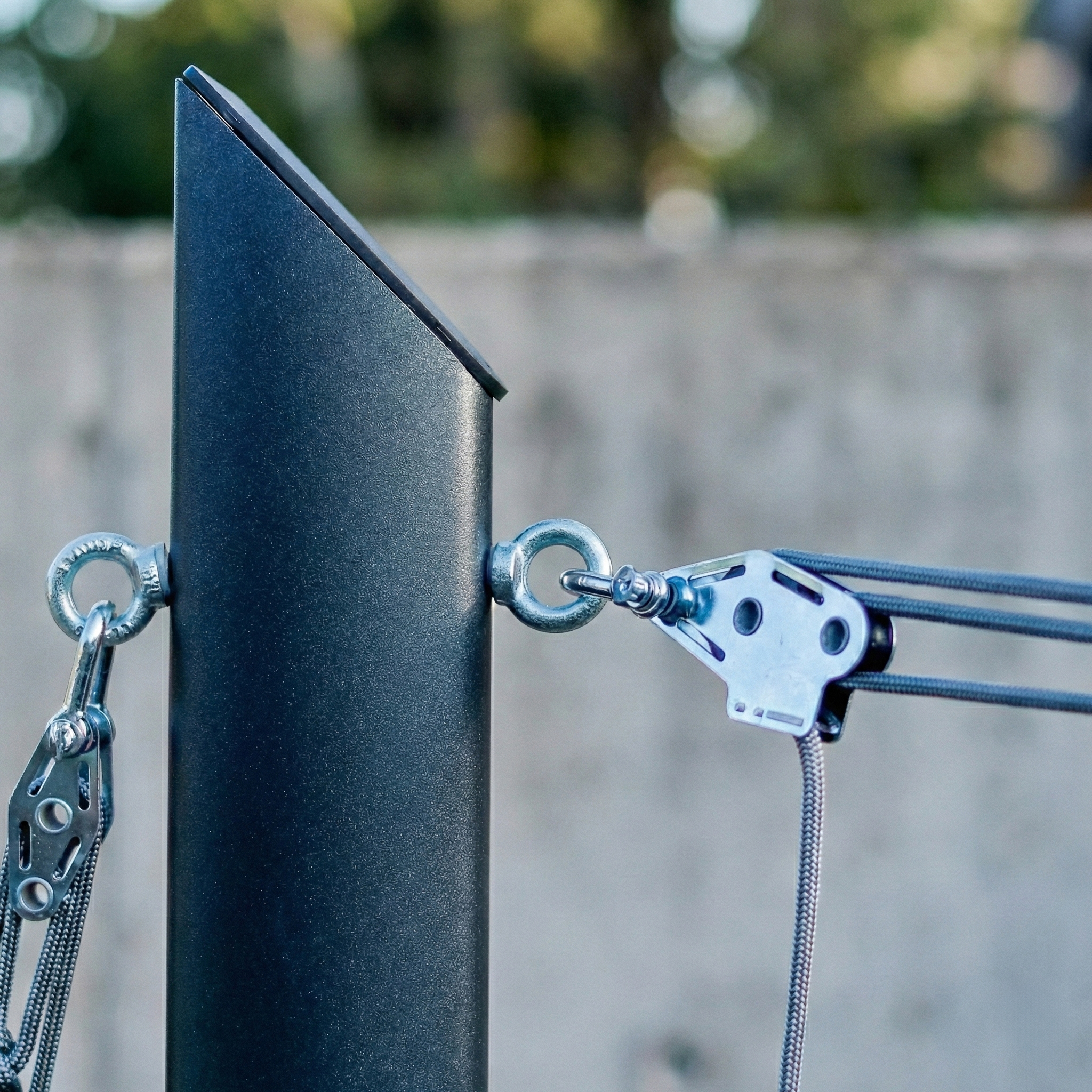 Náš unikátny kladkový systém strojnásobí vašu silu. Vďaka mechanizmu EZ Muscle x3 dokážete pri vynaložení sily len 20 kg dosiahnuť napnutie rohu plachty až 60 kg, čo je kľúčové pre stabilitu vo vetre.