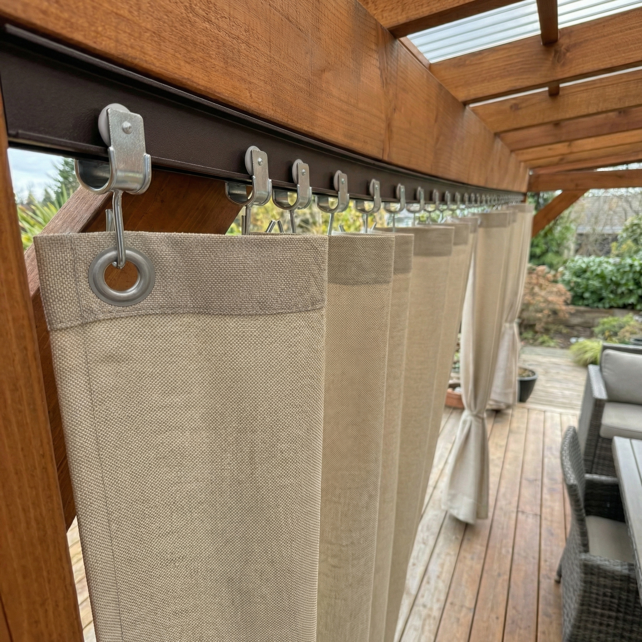 Vyberte si spôsob uchytenia, zakončenia aj rozdelenia závesu tak, aby dokonale vyhovoval vašej terase či pergole.