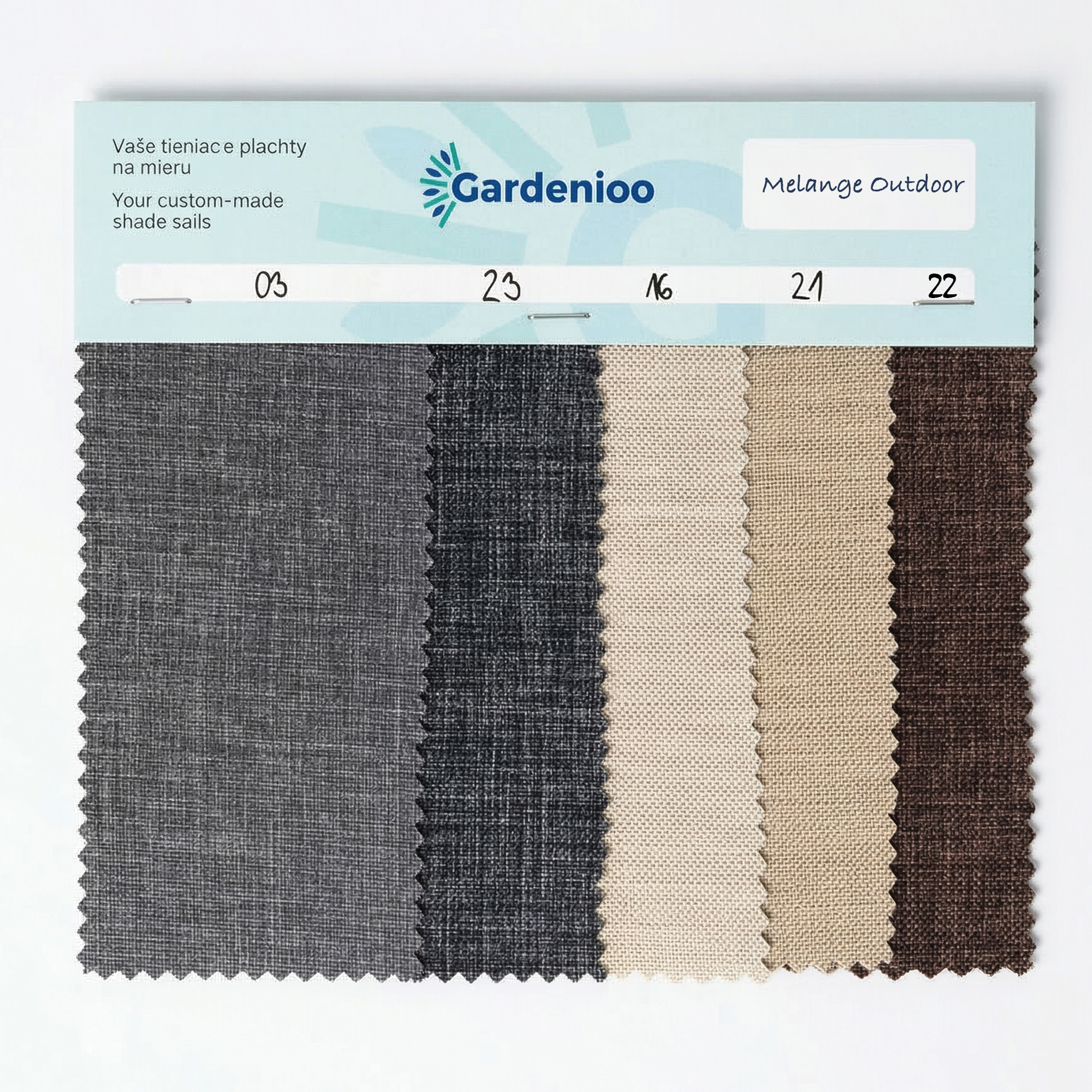 Pure Outdoor a Melange Outdoor predstavuje kvalitné exteriérové tkaniny určené pre použitie na terasách, pergolách a v záhradných priestoroch. Látky sú vyrobené z odolného polyesteru a svojou štruktúrou prirodzene pripomínajú ľan, vďaka čomu majú elegantný a moderný vzhľad.